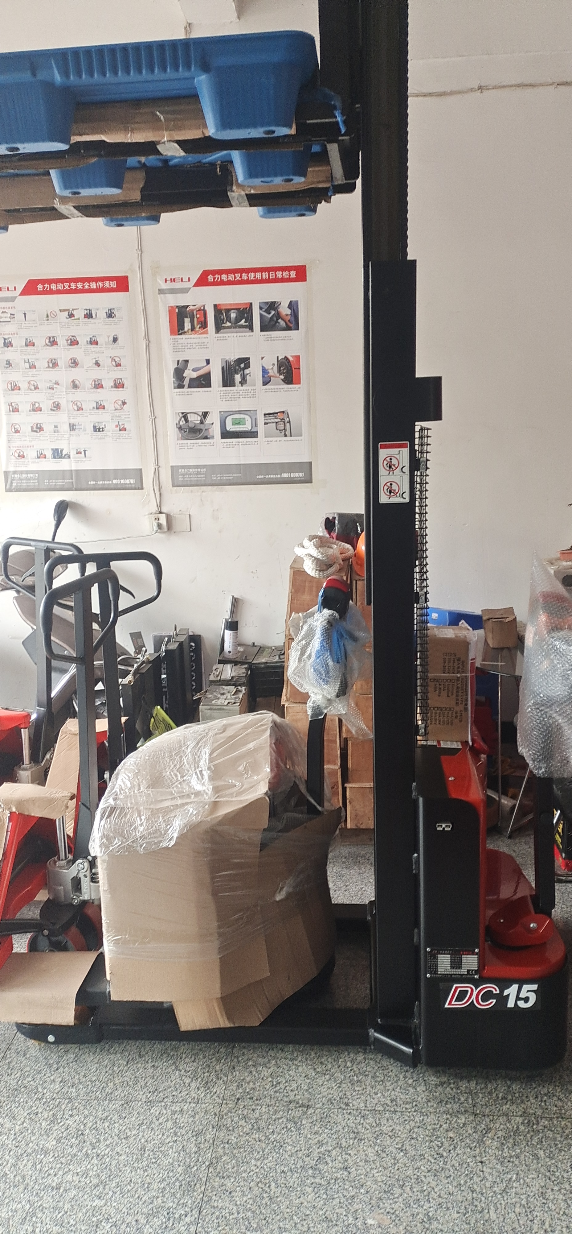 合力1.5噸電動托盤堆垛車,可以升3米高。它可以很好的滿足客戶對于在小空間范圍內(nèi)的堆放貨物和裝卸貨物的需求。